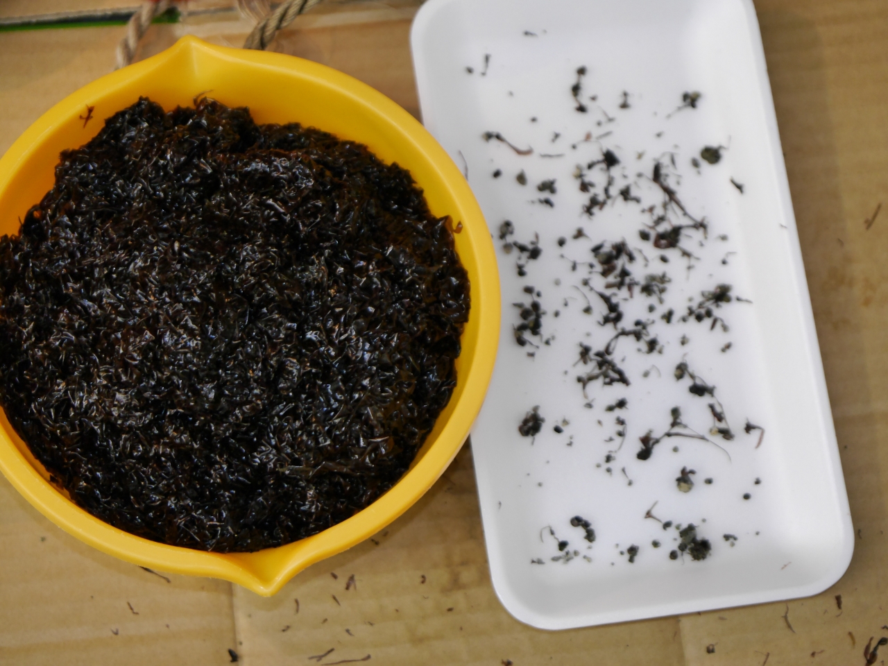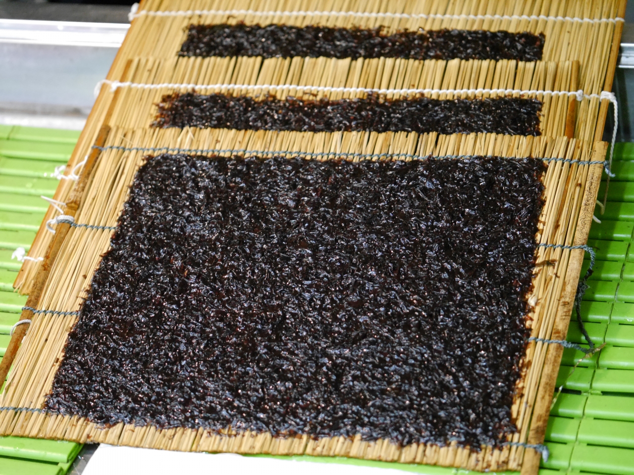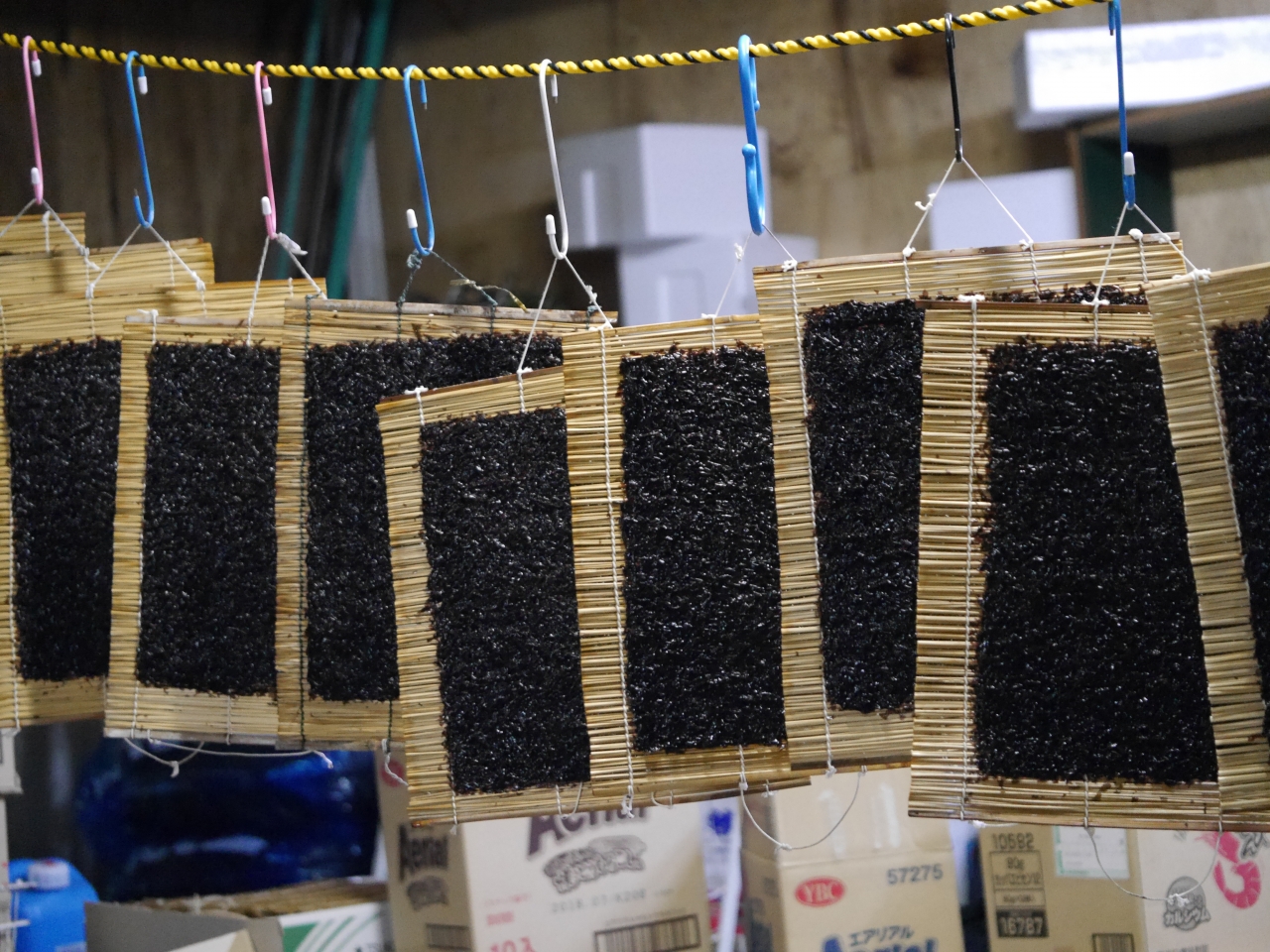 神海苔はすべて手作り、氷点下の気温の中、朝から身体一つで摘んできた天然岩海苔を手作業で丁寧に小石を取り除き、細かく細断します、何度も丁寧に水で洗い、すだれに海苔を打ち、数日乾かして、さらに砂や小石を取り除き完成します。手間暇かけてこだわって作っています。その希少価値をご理解ください。